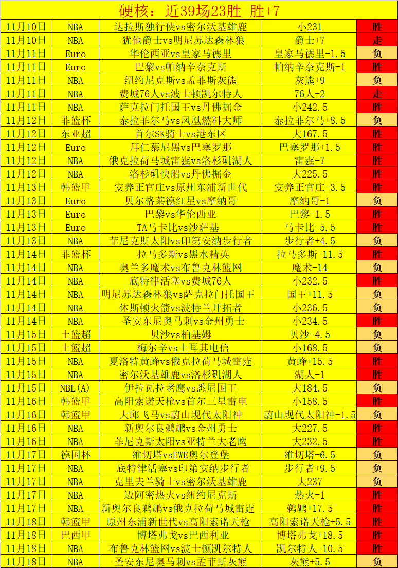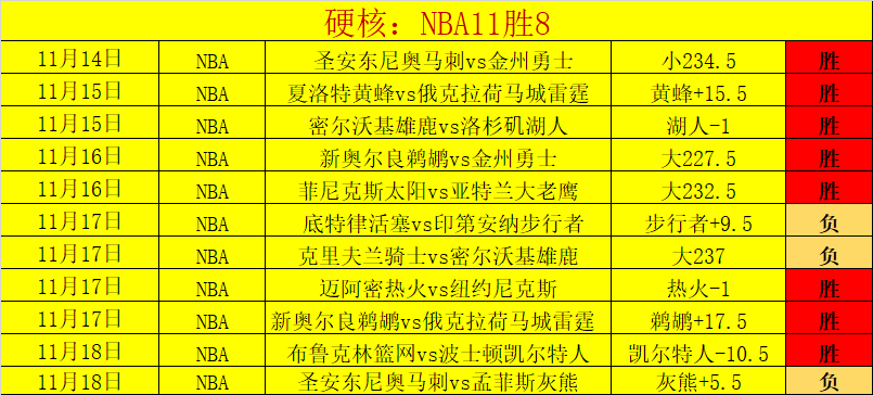 NBA目前近11胜9,非常精彩的NBA表现。昨天胜利发挥,近39场胜23场,胜+7,胜+效果非常优质!