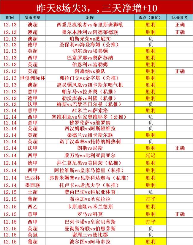 昨天继续炸裂,8场仅失3,目前三天仍然净增+10场,特别是葡超,1胜1平不败,另外意甲和西乙不负众望,今天以杯赛为主,杯赛要小心战意。