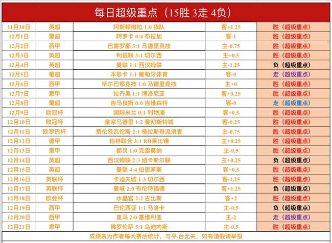 战绩回顾:昨日【每日超级重点】意甲佛罗伦萨方向完美高位全胜,【每日超级重点】近19胜15,成绩非常出色!赞赏数据1场,德乙布伦瑞克完美全胜,赞赏数据拿到连胜!解锁文章2战拿到1胜1负,近15胜10,成绩不俗!意甲佛罗伦萨胜利,英超曼联没有打出!总进球数没有发送,总进球数依然近4胜3!鸡锅不追求场次多,追求少而精准,绝不滥竽充数,必须把老铁们的每一份信任都转化为胜利!